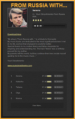 Youri's music is like an ocean of orchestral sounds pulling out all our emotions and feelings, making us feel so special... His music can be described as New Age Contemporary Instrumental, European romantic melodies, Tangos, Bard Music (Vocal Plus Guitar).
